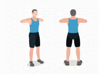 You can straighten your back or bend it. Both works. You can hold dumbells in your hands to get more of a challenge. If you don’t have dumbells, you can hold two equal weights in your hands.